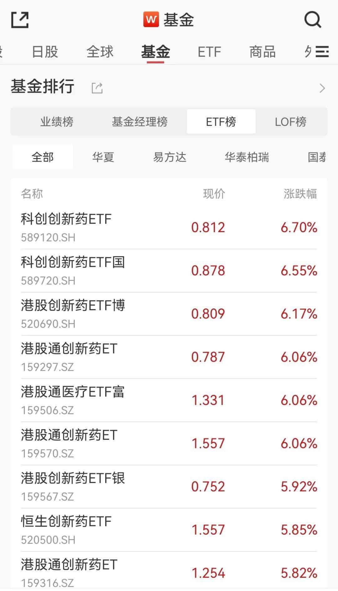多只港股创新药ETF、港股通ETF紧随其后,港股创新药ETF博时、港股通创新药ETF南方、港股通创新药ETF汇添富、港股通医疗ETF富国均涨超6%。